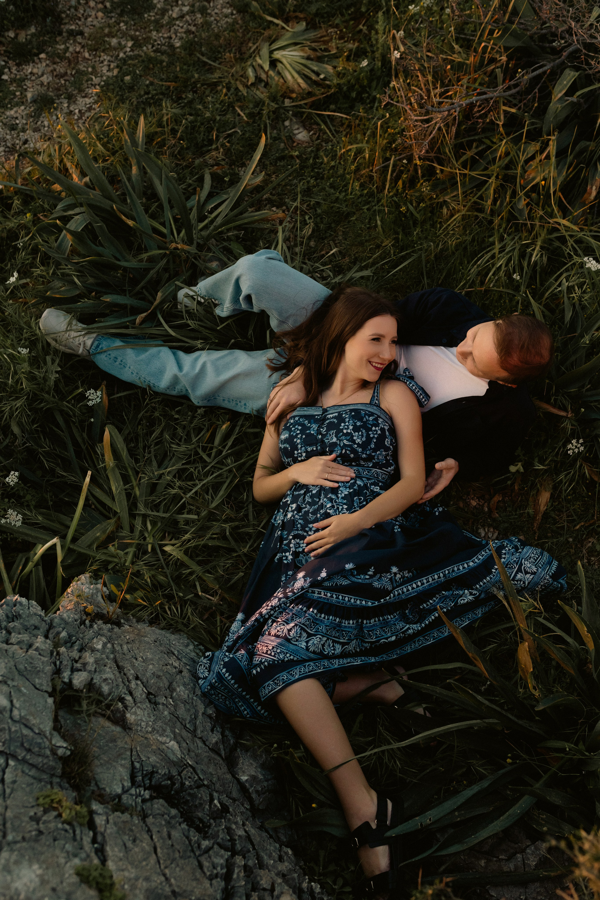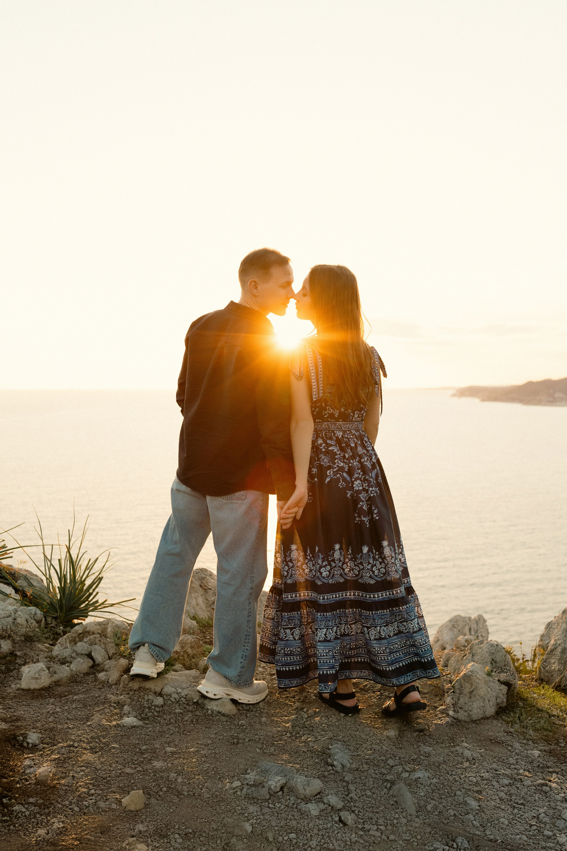 Sunset. Cliff. Wedding photo shoot on the edge of a cliff