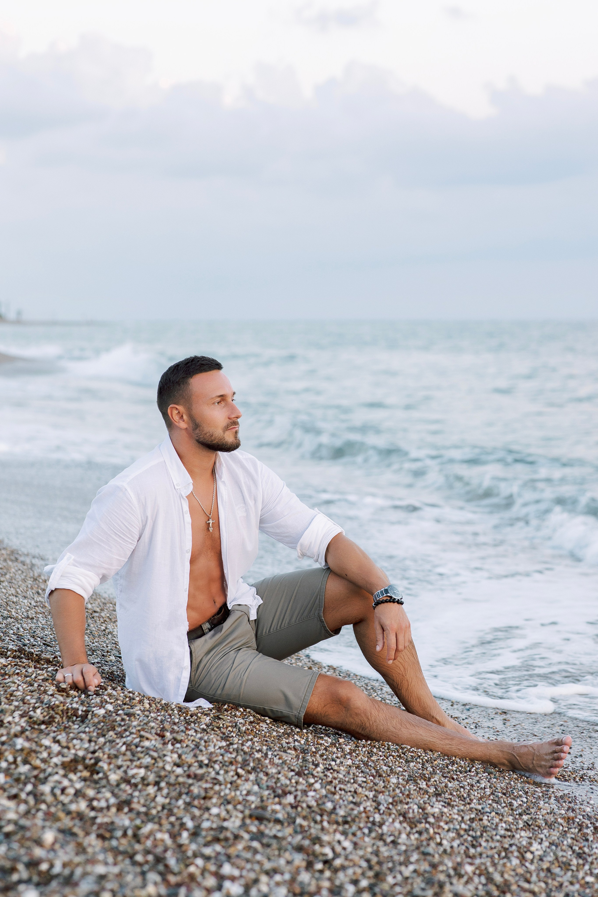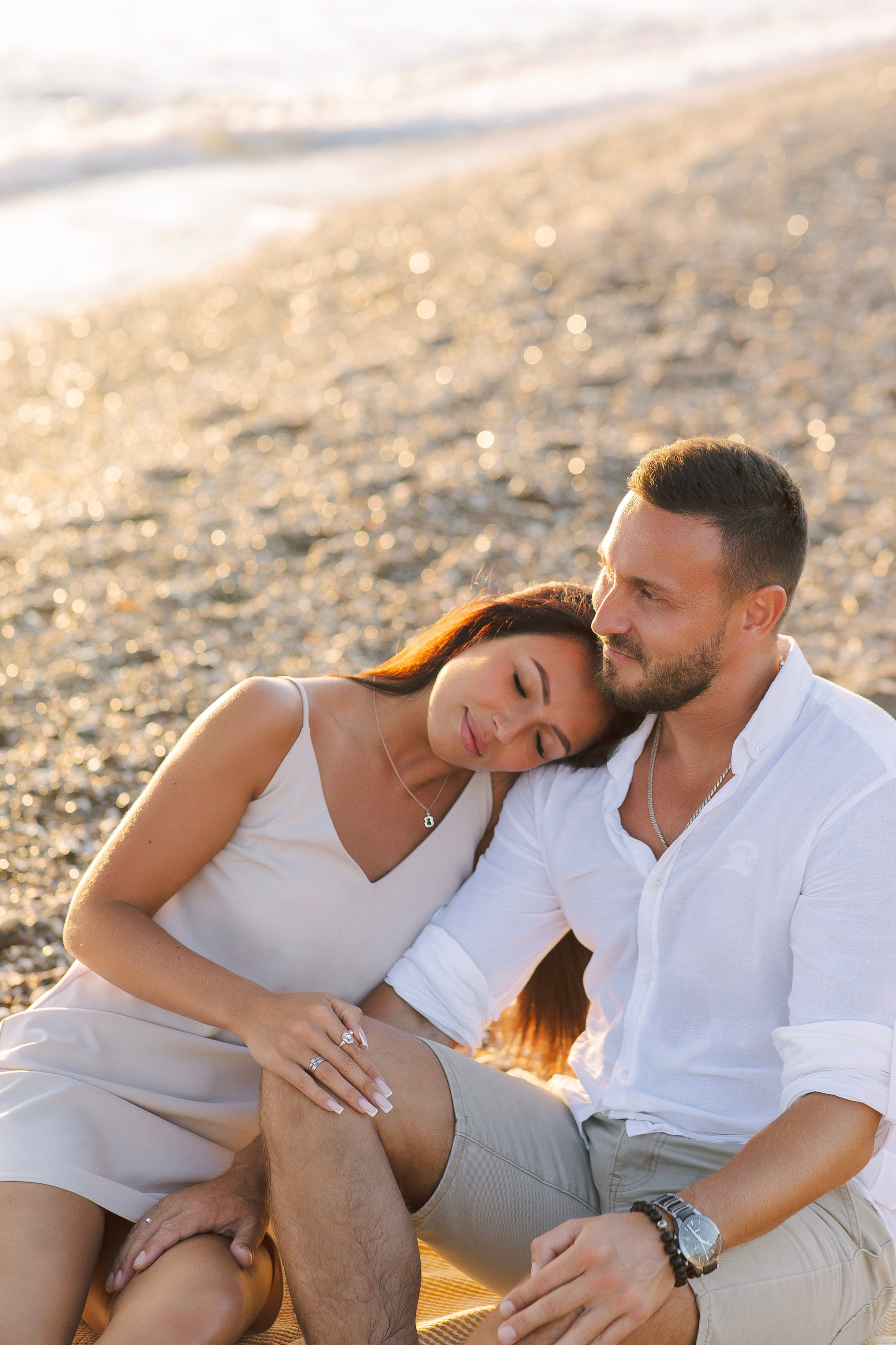 Sunset. Elegant Side Sunset Portrait Sea Magic and Warm Light Photoshoot